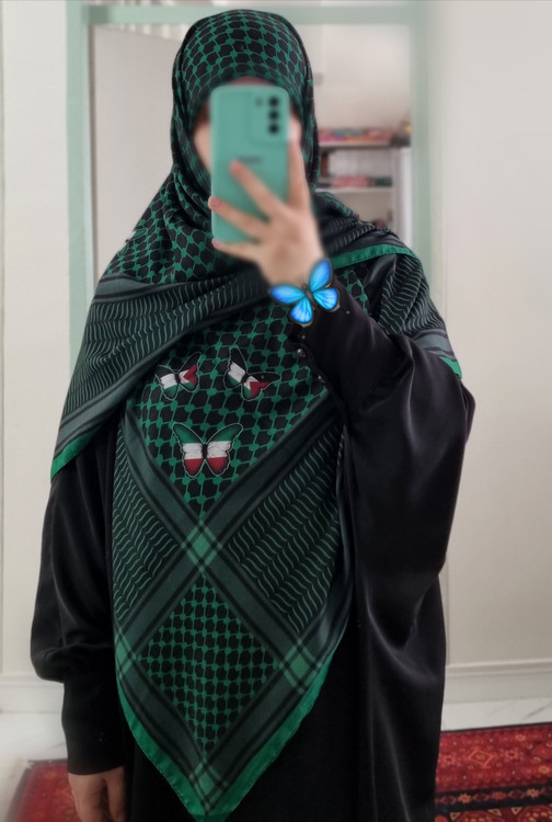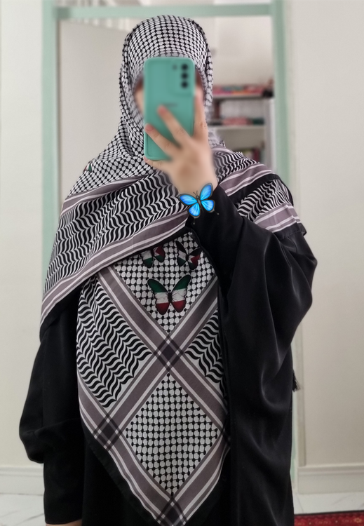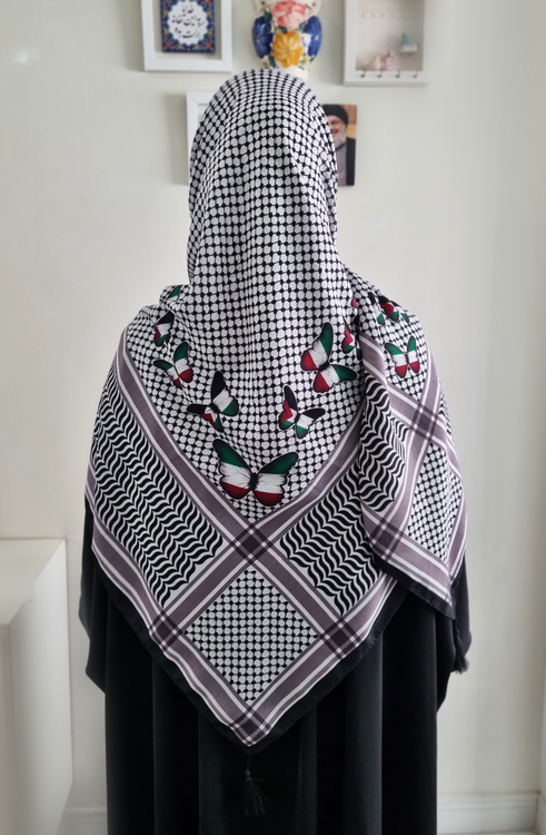 با طرح چفیه و پروانه هایی به رنگ پرچم ایران و فلسطین🦋